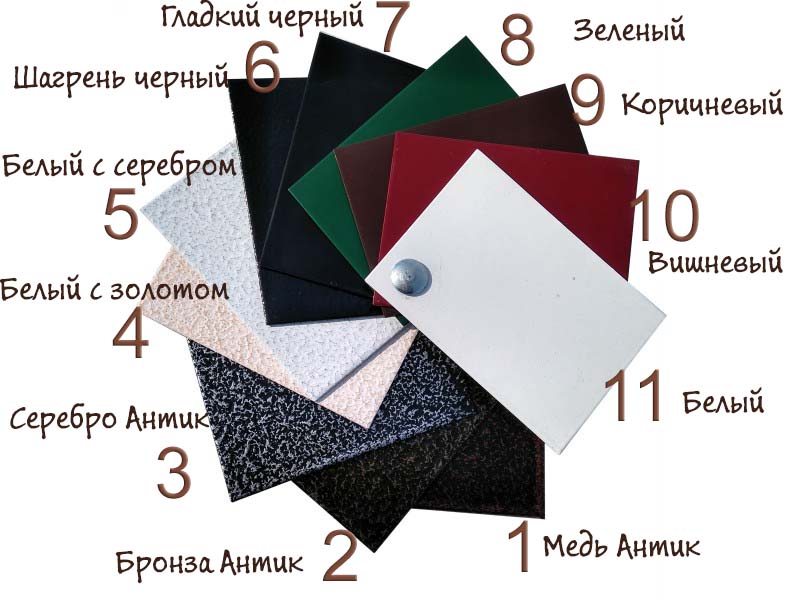 1. ЦВЕТ: "АНТИК" - МЕДЬ, БРОНЗА ИЛИ ПОД ЗАКАЗ ПО RAL