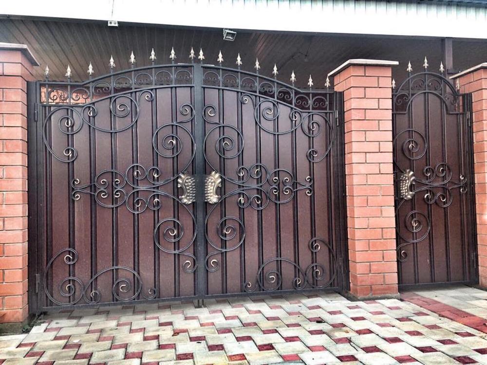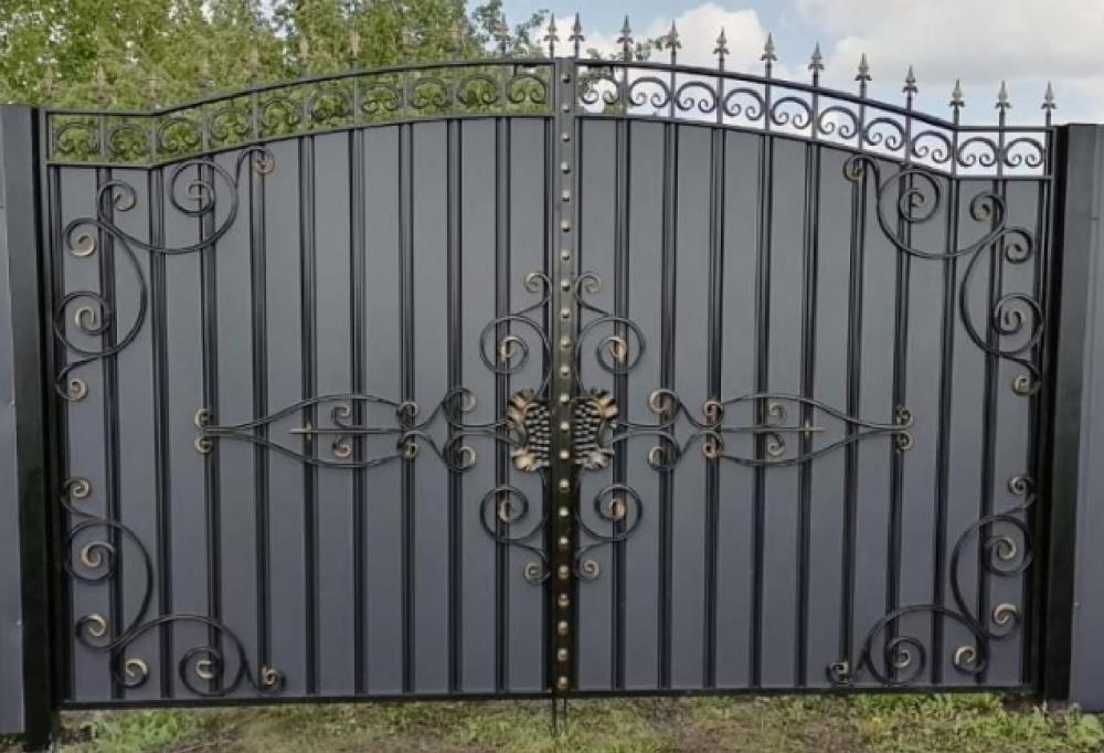 Все составляющие собранные для подобных ворот обладают прокатанные бортики, которые выглядят невероятно красиво на изделии в сочетании с окрашиванием патиной и выделения законцовок элементов и литых пик.