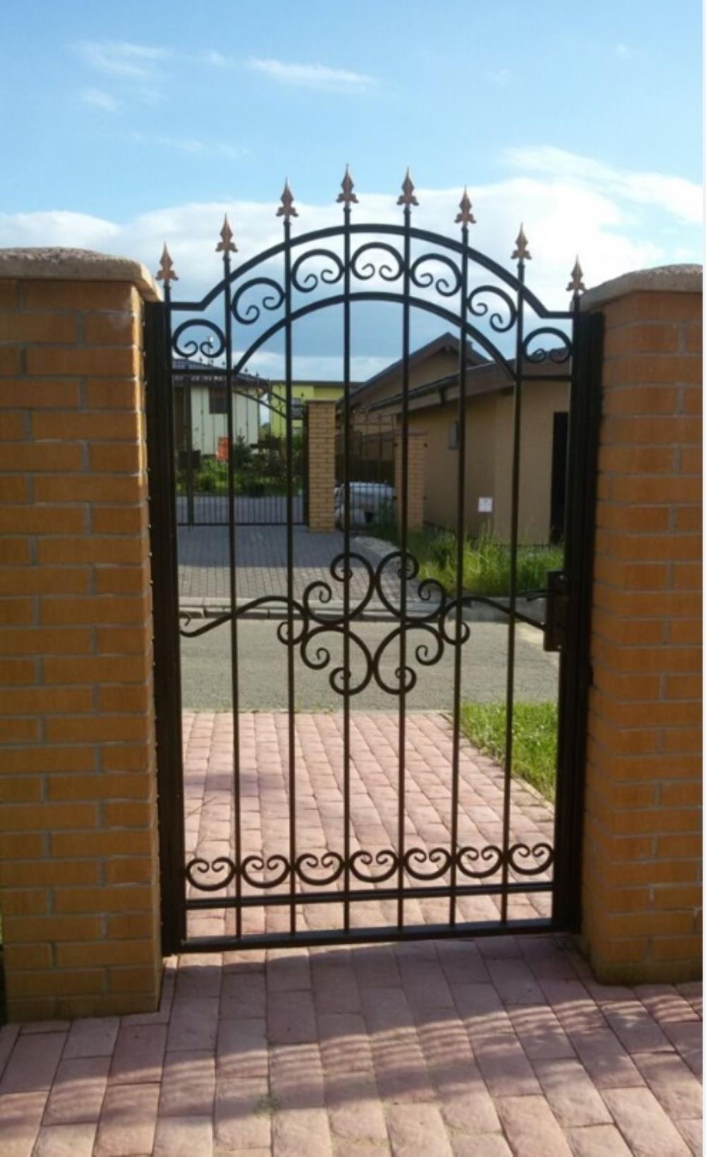 Каркас ворот и калитки выполнен из профильной трубы 50х25 мм. Вертикальные прутья- профильная труба 15х15 мм. Ворота и калитку украшает ряд литых пик. По верху изделий проходят кованые элементы. Рисунок на ворота и калитку выполнен из профильной трубы 15-15мм с прокатанными бортиками. Все элементы в рисунке и пики на воротах и калитке покрыты декоративной патиной «Церта-Пласт». (Есть дополнительные фото)