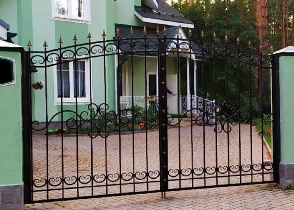 Все детали созданные для таких ворот обладают прокатанные бортики, которые выглядят необычайно красиво на изделии в сочетании с покраской патиной и выделения законцовок составляющих и литых пик.