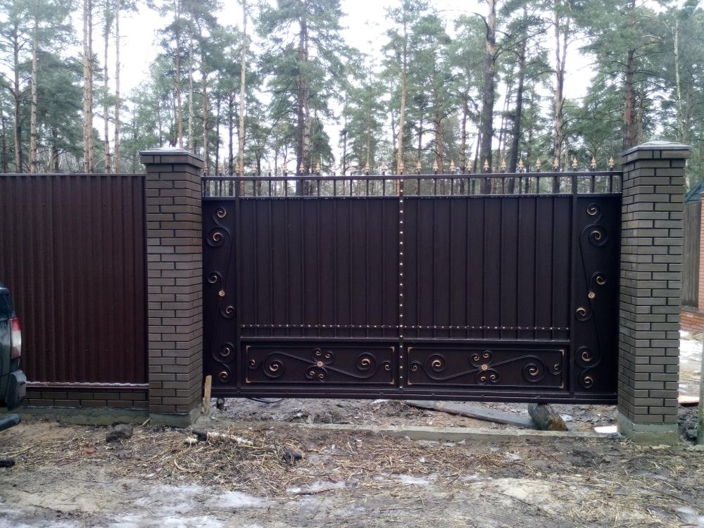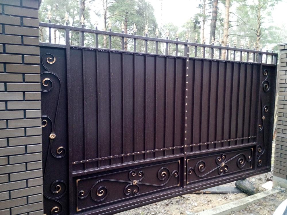 ворота и калитка изготовленны приемом машинной прокатки холодной ковки, что намного удешевляет изделие в сравнении с полнотелым кованым металлом и горячей ковки металла.