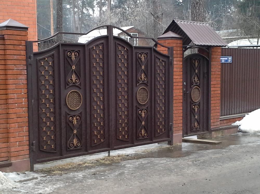 ворота и калитка изготовленны способом машинной прокатки холодной ковки, что сильно удешевляет товар при сравнении с полнотелым кованым металлом и горячей ковки металла.